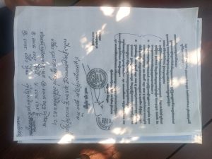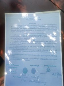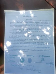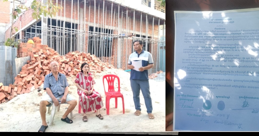 តាមរយៈលិខិតជូនដំណឹងនេះខ្ញុំបាទសូមបញ្ជាក់ថា ១ កូនក្តីខ្ញុំនិងចាប់ផ្តើមសាងសង់បានដោយស្របច្បាប់ ពីព្រោះថាទីតាំងដីឡូត៍របស់កូនក្តីខ្ញុំបាទ គ្មានទំនាស់ និងគ្មានវិវាទជាមួយអ្នកជាប់ព្រំឡើយ ដែលបង្ហាញថា ជាការតវ៉ានិងជាការផ្អាកការសាងសង់ ដែលគ្មានមូលហេតុទាល់តែសោះ ។ ២ បើអាជ្ញាធរ សម្រេចឲ្យផ្អាកការសាងសង់ នោះកូនក្តីខ្ញុំអាចបង្ខចិត្តផ្អាកបាន លុះត្រាតែ ក្រោយពេលអាជ្ញាធរតម្រូវឲ្យឈ្មោះឈរ អ៊ាវជឺ ឈ្មោះមេន ថូ ឬអ្នកតវ៉ាទាំងអស់ ចាកចេញពីទីតាំងដី ផ្ទះរបស់ខ្លួន ហើយអ្នកទាំងនោះបានចាកចេញអស់ជាមុនសិន ដើម្បីឲ្យស្មើភាពគ្នា។ ៣ ក្នុងករណីឈ្មោះឈរ អ៊ាវជឺ ឈ្មោះមេន ថូ ឬតំណាងប្រជាពលរដ្ឋណាមួយ នៅតែចេញមុខហាមឃាត់ ឬតវ៉ាបង្កការរំខានណាមួយ មិនឲ្យកូនក្តីខ្ញុំបាទសាងសង់ នោះកូនក្តីខ្ញុំនិងចាត់វិធានការផ្លូវច្បាប់ ដើម្បីការពារសិទ្ធិនិងផលប្រយោជន៍ស្រប់ច្បាប់របស់ខ្លួន ។